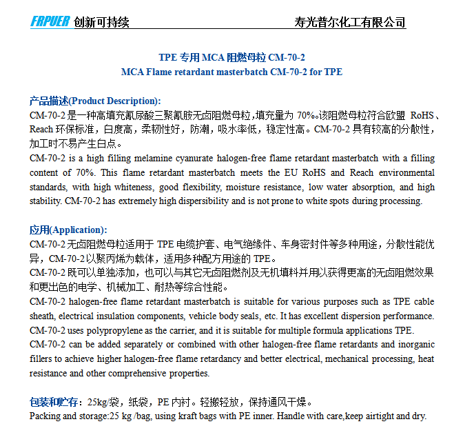 MCA Flame retardant masterbatch CM-70-2 for TPE
